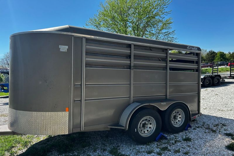 Reliable and ready for the job, this 2017 Delta 14 ft Livestock Trailer is perfect for safely transporting cattle, horses, goats, or other livestock. Built with durability and ease of use in mind, this bumper pull trailer features a sturdy steel frame, solid flooring, interior center gate, and a rear swing/slide combo gate for convenient loading and unloading.